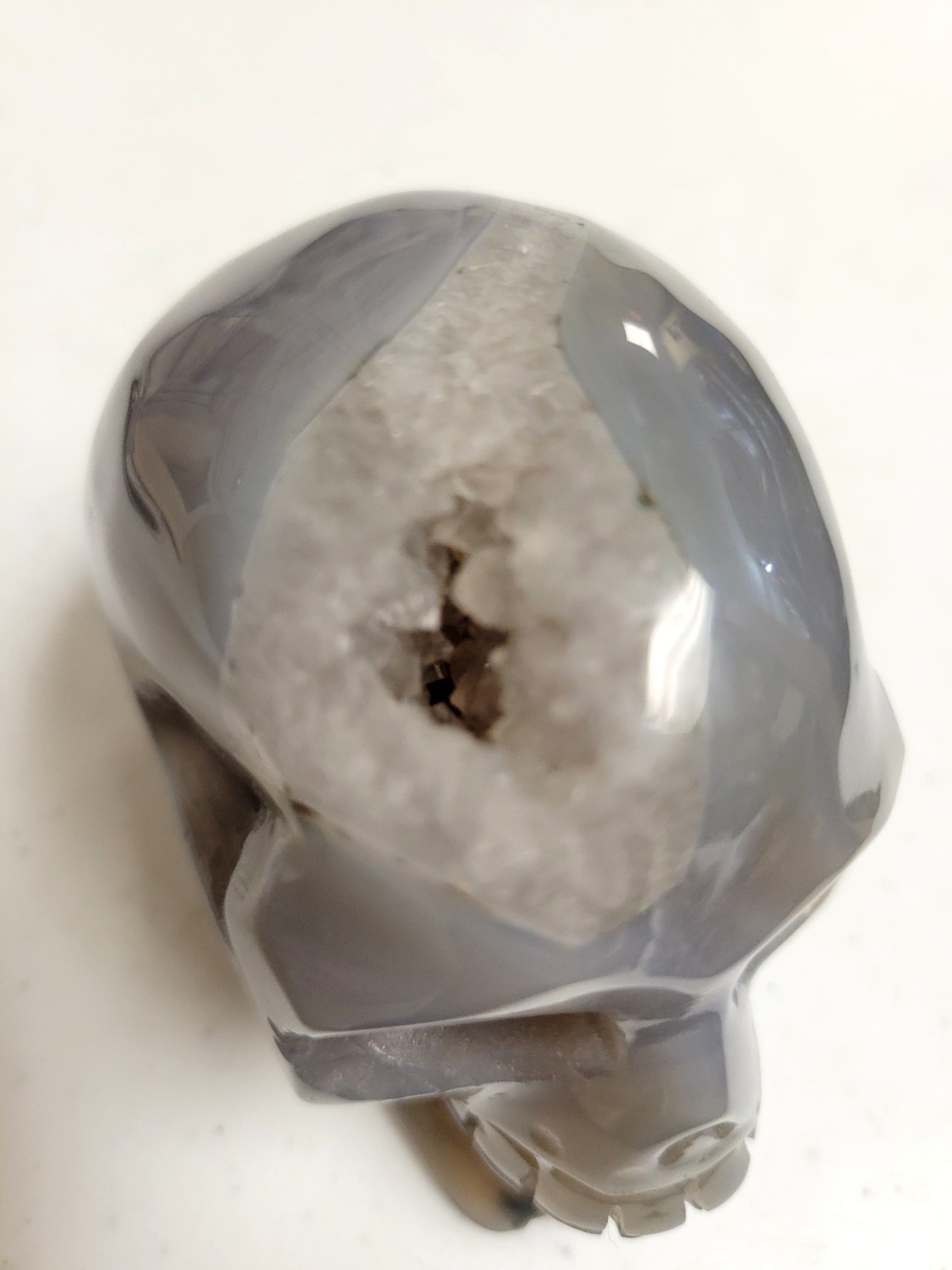 Awesome Agate skull with a geode cavity on top.